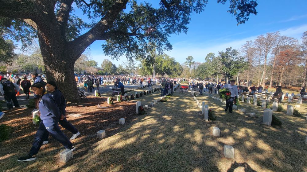 Saturday, December 17, witnessed hundreds of volunteers from many local organizations come out to the Wilmington National Cemetery to pay honor to our dead veterans by placing a Christmas wreath on their tomb, every tomb.